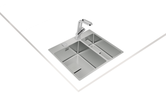 Мойка оборудована двуми большими чашами размером 340x400x200 мм и 180x400x140 мм, которые подходят для мытья различной посуды, от маленьких приборов до крупногабаритных элементов. Оба отверстия клапана выполнены в форме 3½" SQUARED для обеспечения оптимальной проходимости воды.